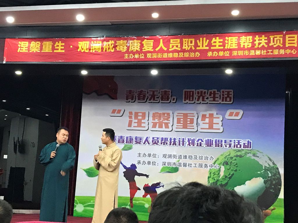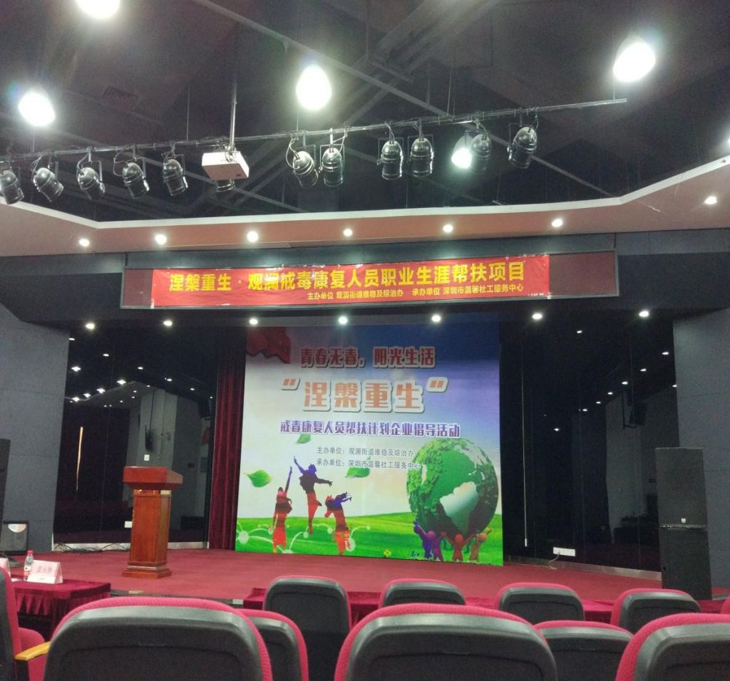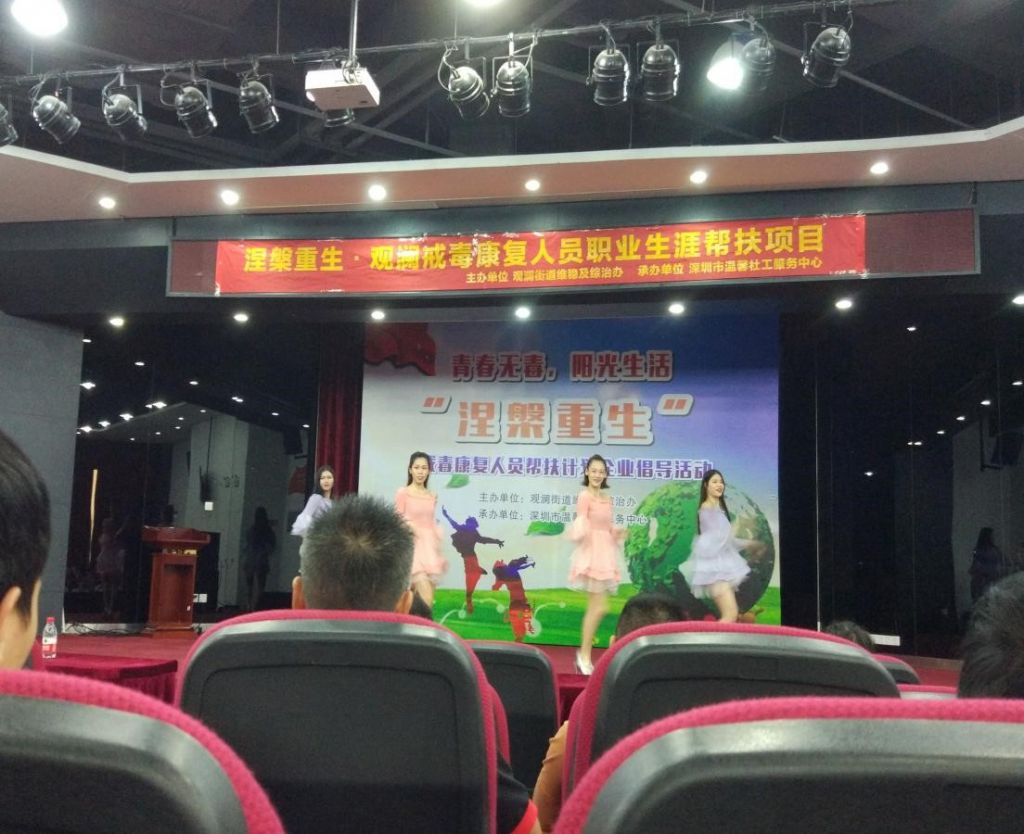 2018年10月18日下午14:30分,我和同事代表我們公司,參加了工業(yè)園與觀瀾街道聯(lián)合舉辦的關于觀瀾街道禁毒宣傳法制教育活動—《涅槃重生?觀瀾街道社區(qū)康復人員幫扶項目》 。這個活動的目的是為了消除對社區(qū)戒毒康復人員的歧視,進一步協(xié)助戒毒康復人員規(guī)劃自身的發(fā)展方向,找尋生活、工作的意義,重新融入社會和回歸家庭。活動意義重大!